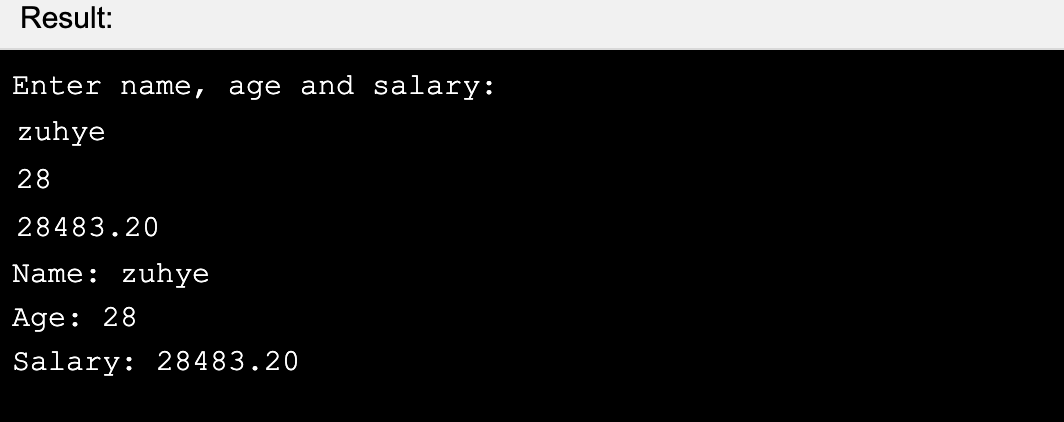 System.out.println("Enter name, age and salary:");