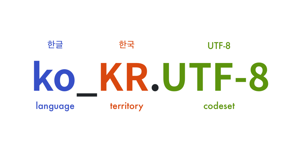 한국어를 사용하는 경우 주로 ko_KR.UTF-8을 사용하며, 이 때 맨 앞의 ko는 한국어(한글), 가운데 언더바(_)로 구분되는 KR은 국가 변수(한국), 마지막 점(.)으로 구분되는 코드셋은 EUC-KR이나 UTF-8같은 문자 인코딩 코드셋을 의미한다. 일반적으로는 이렇게 언어+지역+코드셋의 세 개의 값을 묶어서 로케일이 구성된다. 이 뒤로 @로 구분되는 추가 문자열이 붙는 경우도 있지만 자주 사용되지는 않는다.